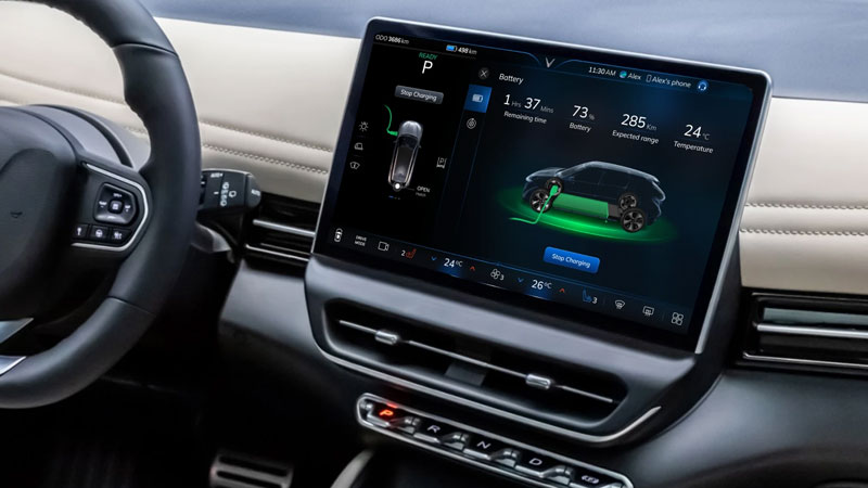 Bản đồ tích hợp trên xe có thể tự động đề xuất dẫn hướng qua trạm sạc khi cần thiết.